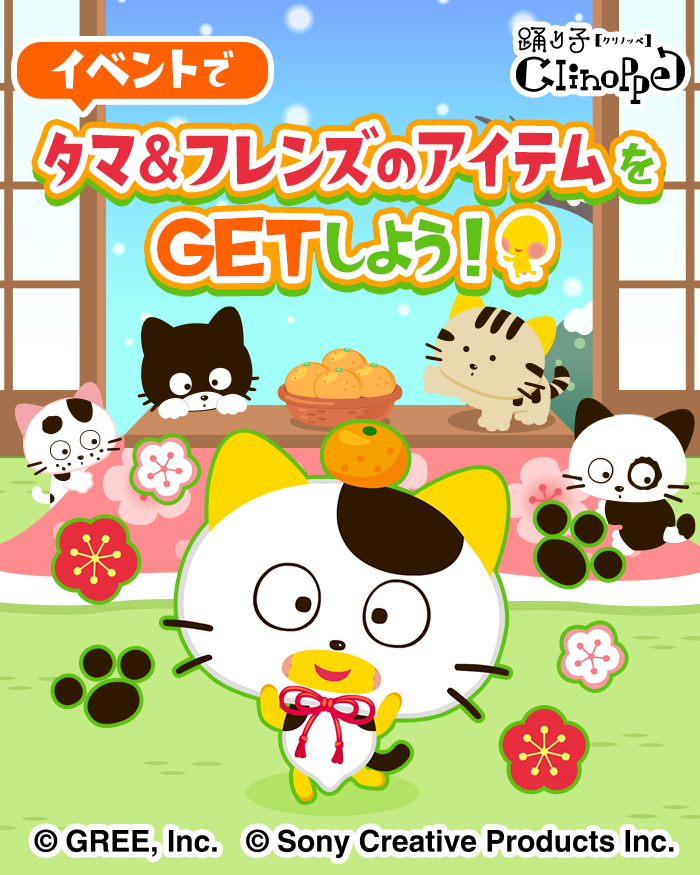 手のひらサイズの不思議な生き物クリノッペを育てていくペットゲーム「踊り子クリノッペ」で、タマ&フレンズとのコラボイベントを開催!